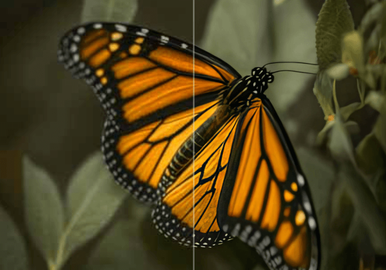 AI圖像放大使用機器學習智能地提高圖像解析度 — 添加真實細節而不是簡單地拉伸像素。結果是在更大尺寸下看起來自然的更清晰、更乾淨的圖像。